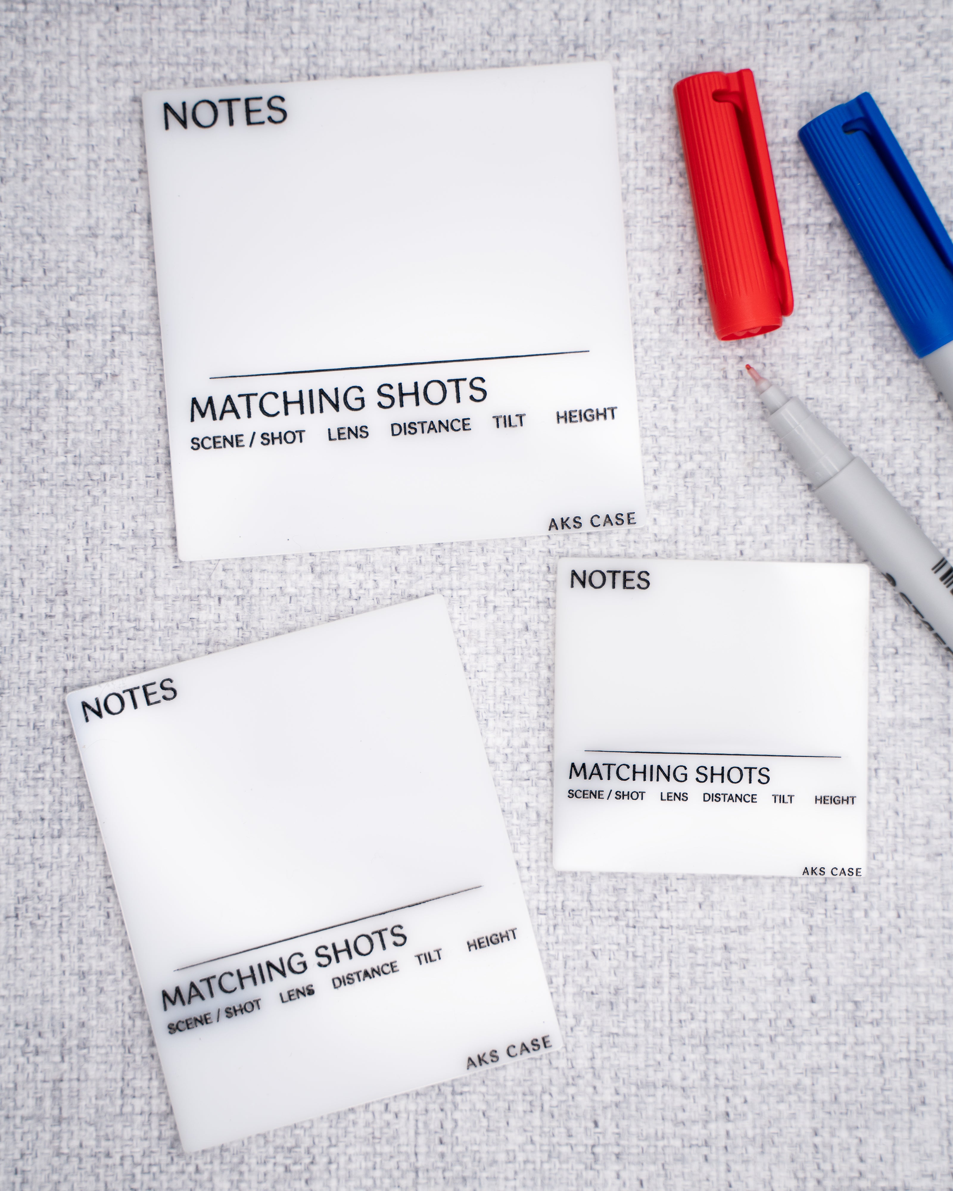 Reduce the risk of miscommunication or errors by adding a note board to the camera for the Operator and the DP. Keep them in the loop with updates, setting changes, and important reminders.