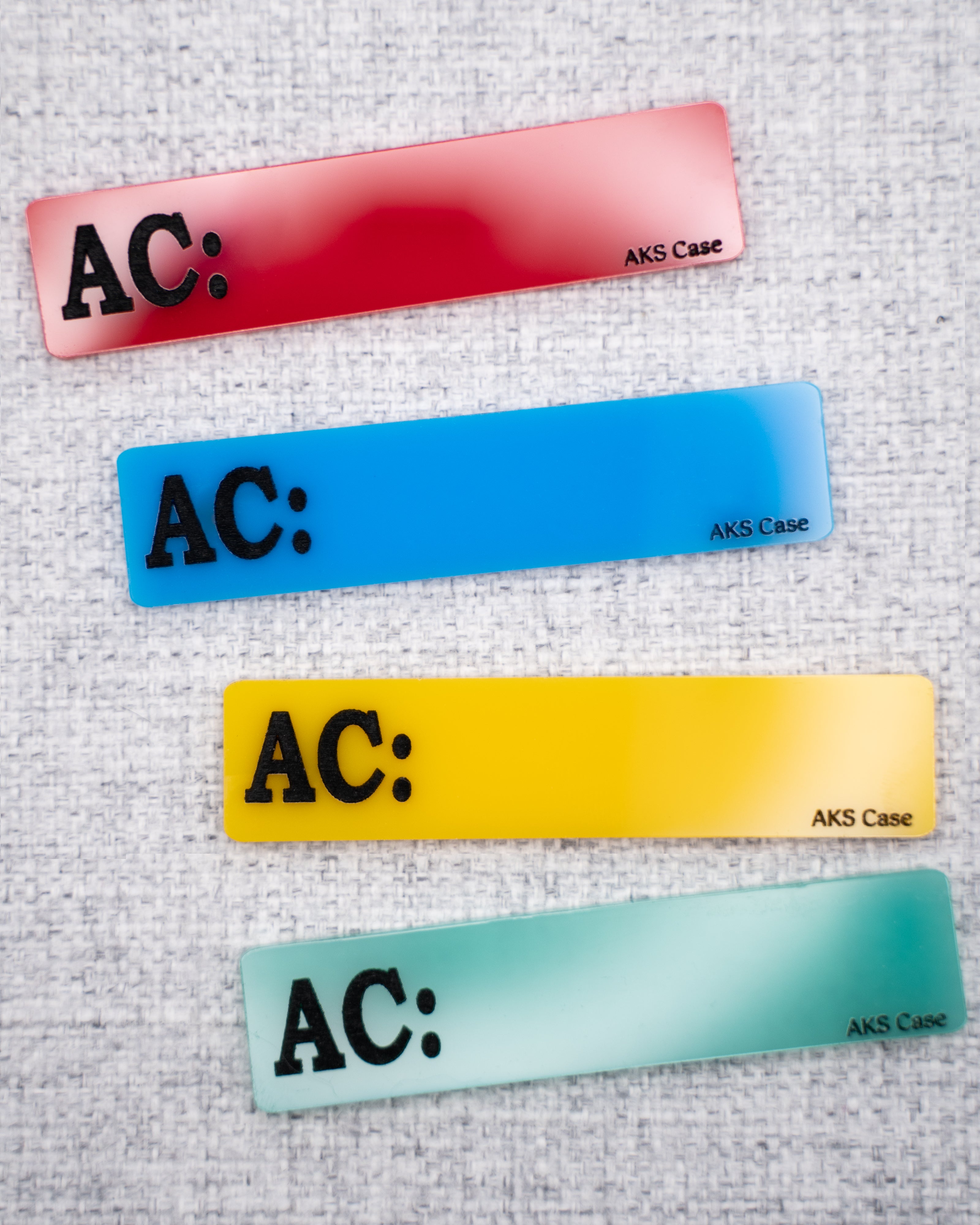 If using a Sharpie, clean glossy side by spraying a small amount of Pancro on a microfiber cloth and wipe acrylic. Do not spray Pancro directly on the tag. Kimtech wipes can scratch acrylic.